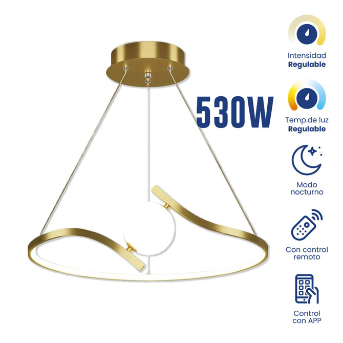 Luminaria colgante Moon dorado es una solución de iluminación diseñada para ofrecer desempeño confiable y eficiencia energética en distintos tipos de espacios. LUMINARIA EUROLUX MOD MOON DORADO 50W 3000K A 6500K DIMABLE+CR+APP Su diseño funcional permite una integración versátil en proyectos residenciales y comerciales, aportando iluminación uniforme, durabilidad y un óptimo rendimiento lumínico.